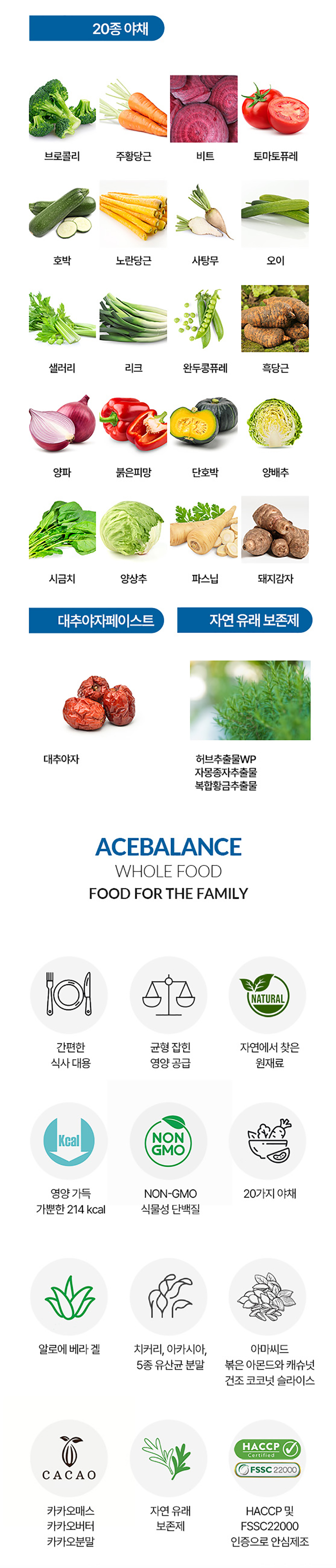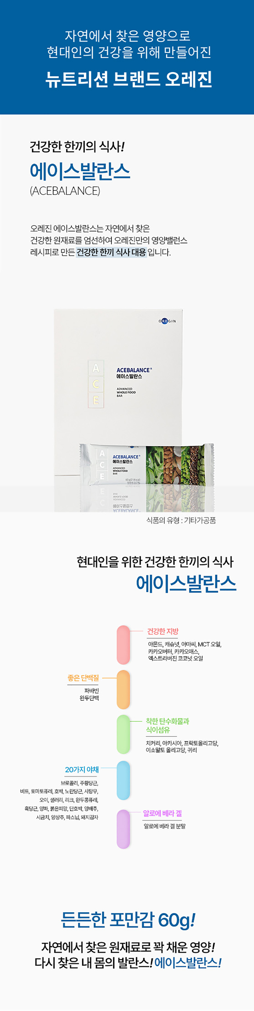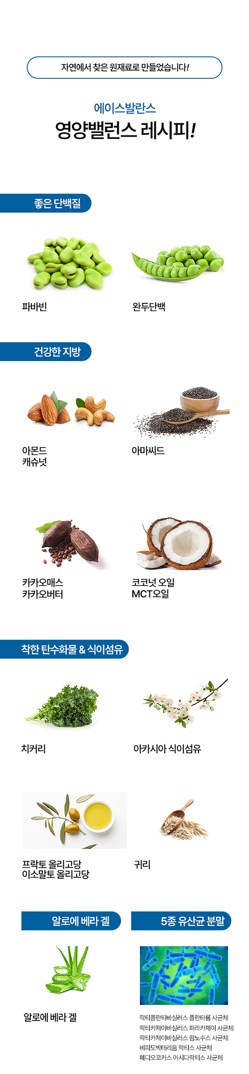 [원재료명] 이소말토올리고당, 완두단백분말(독일산), 카카오매스(네덜란드산), 프락토올리고당, 파바빈단백분말(미국산), 대추야자페이스트, 아라비아검, 카카오버터, 유기농코코넛오일, 카카오분말, 치커리뿌리추출물, 볶은아몬드, 볶은캐슈, 건조코코넛슬라이스, 볶은귀리, 코코넛MCT오일, 볶은아마씨, 향료(천연초콜릿케이크향), 과채가공품, 기타가공품(5종유산균분말), 알로에베라분말, 천일염, 허브추출물WP, 자몽종자추출물, 복합황금추출물
